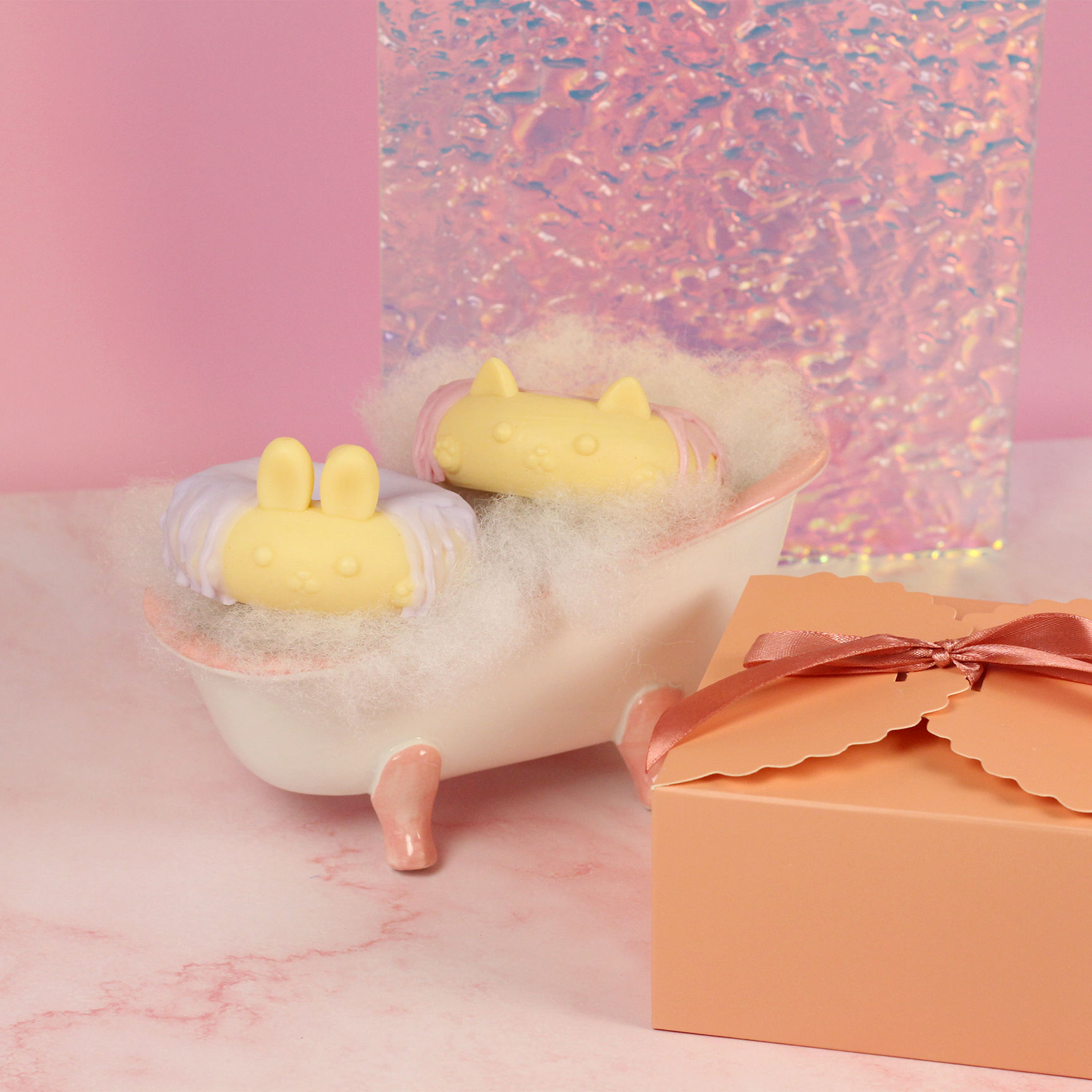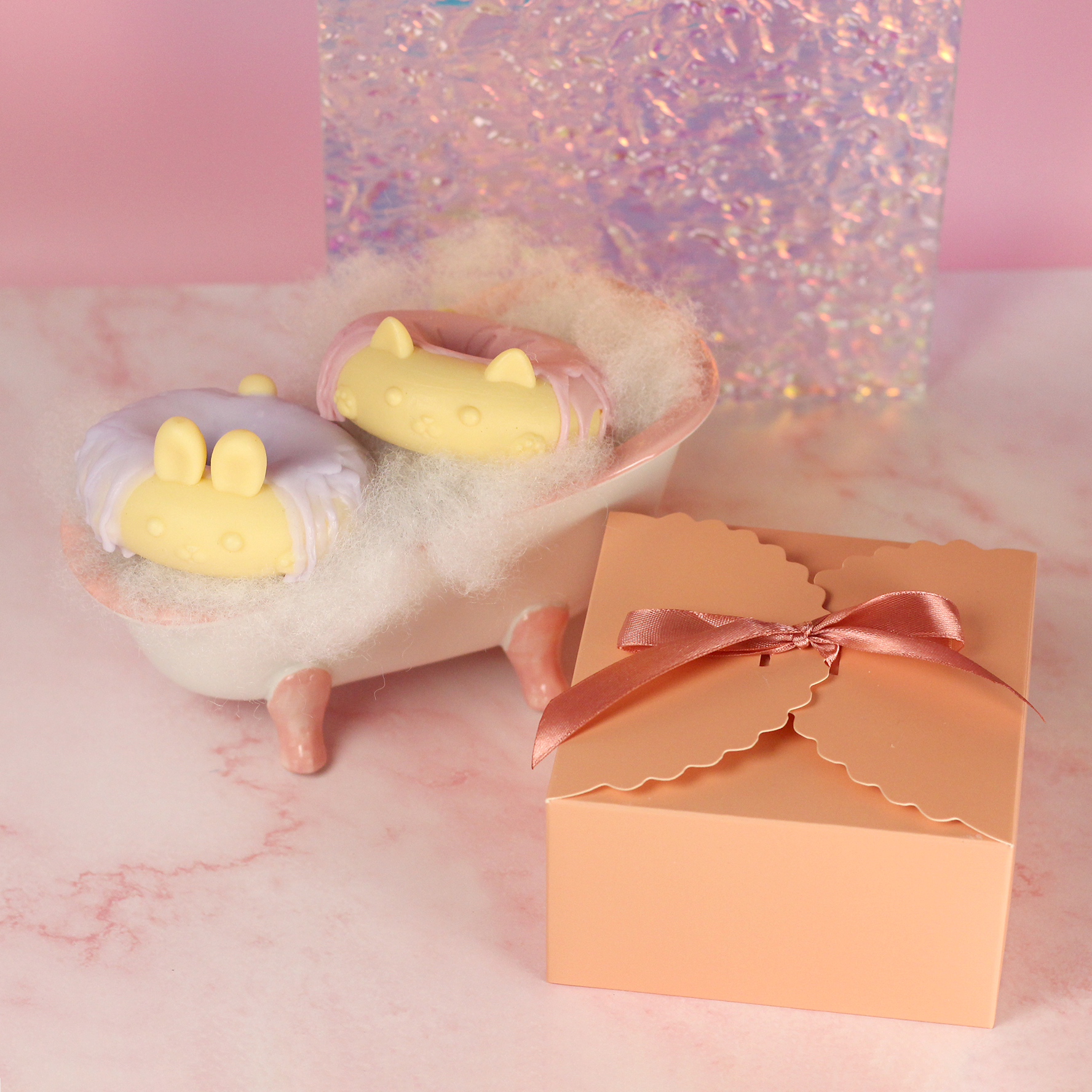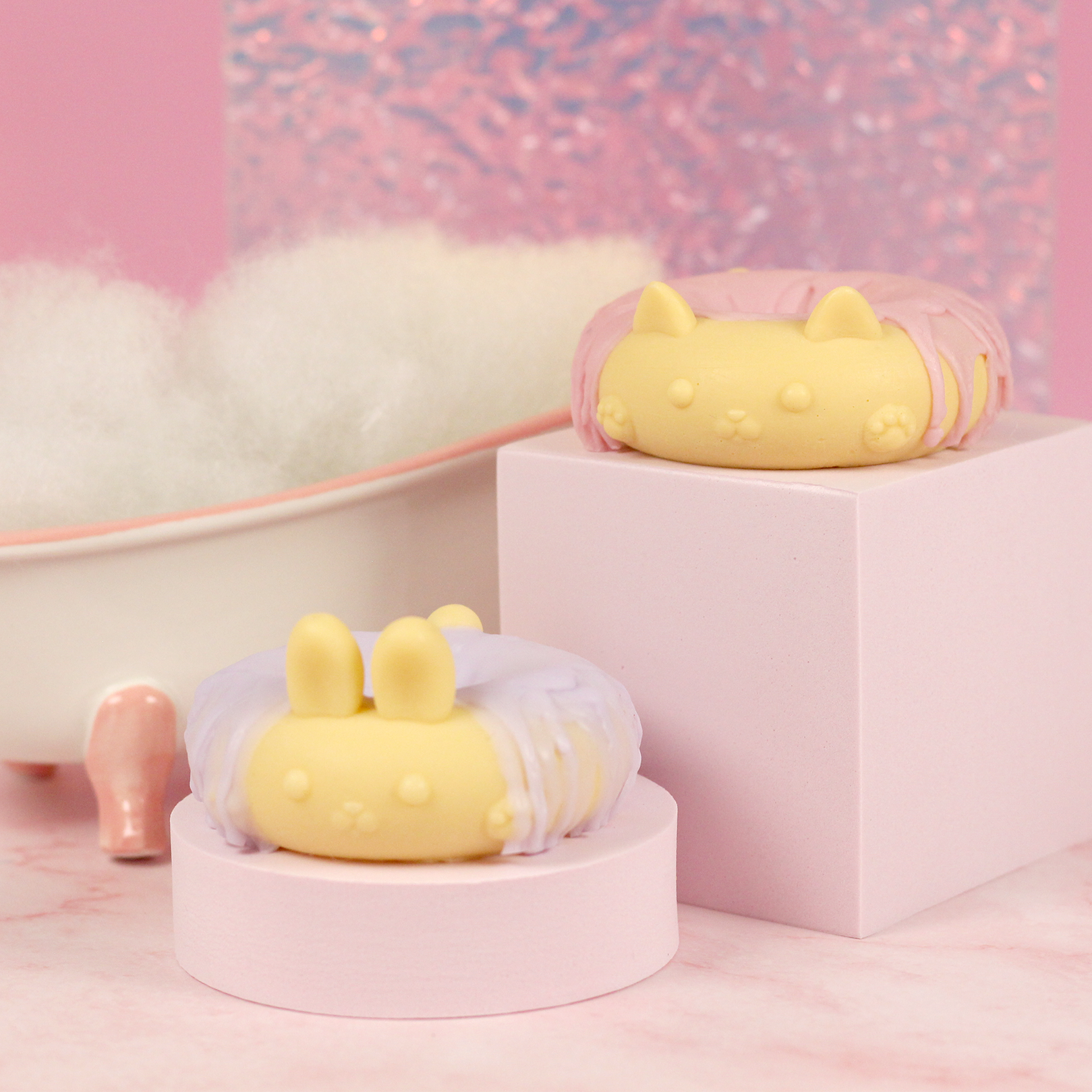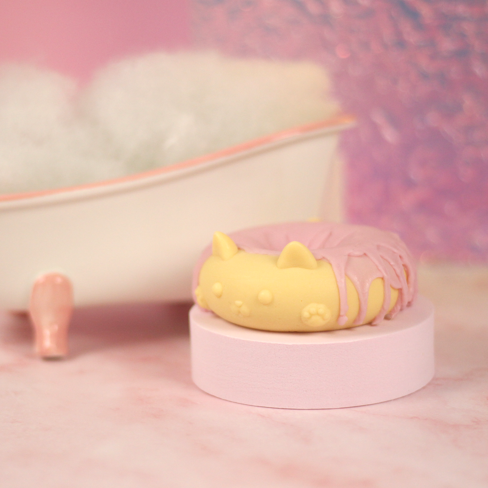 - Donut Cat: Aqua, Sorbitol, Sodium Stearate, Sucrose, Propylene Glycol, Sodium Laureth Sulfate, Sodium Laurate, Glycerin, Sodium Myristate, Sodium Lauryl Sulfate, Sodium Chloride, Fragrance Oil, Stearic Acid, Titanium Dioxide (CI 77891), Lauric Acid, Myristic Acid, Tetrasodium Iminodisuccinate, Tetrasodium Etidronate, Mica, Iron Oxide