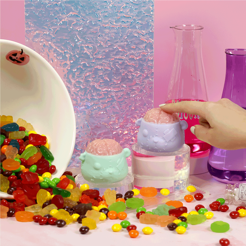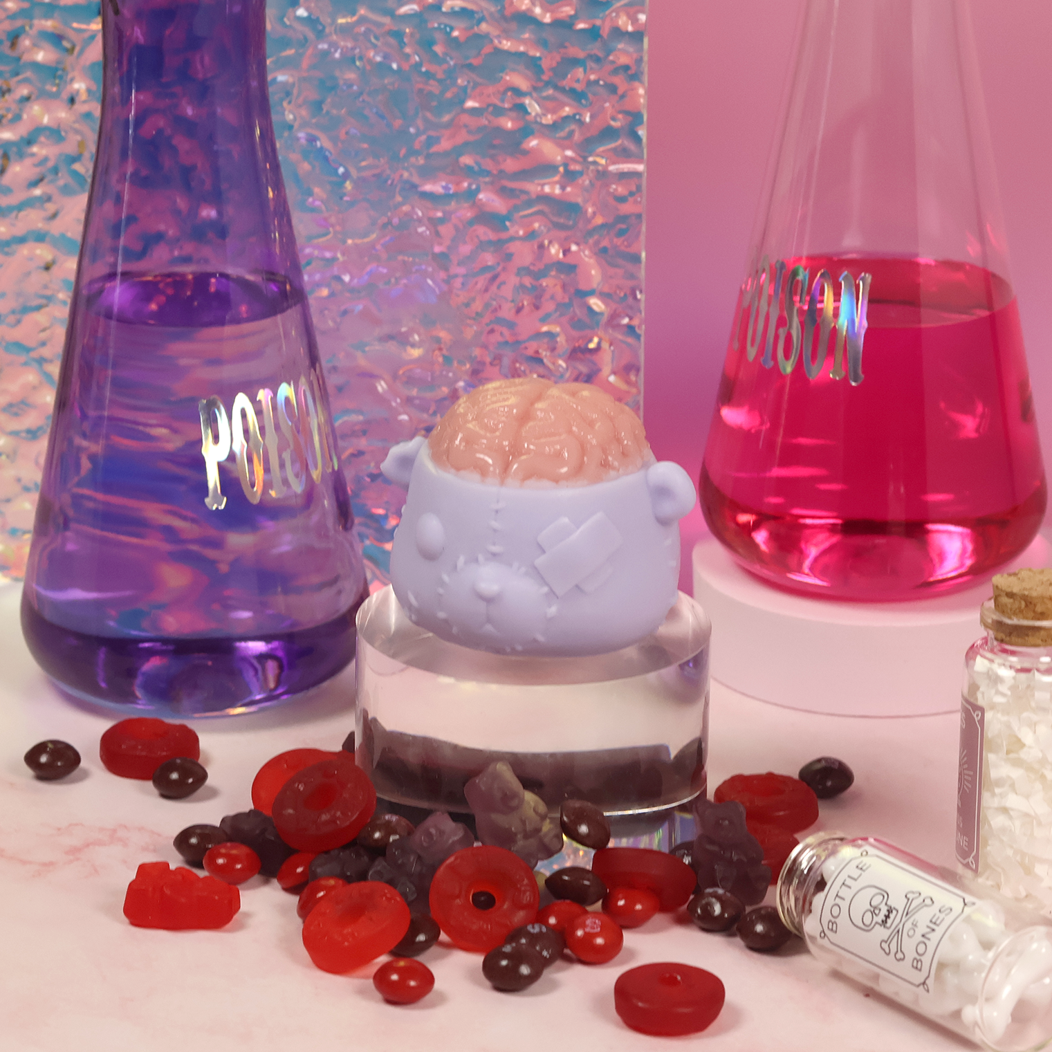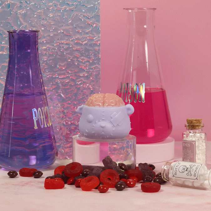 If you dare to find out, enjoy a thrilling "brainwash" with the jelly brain that will give you the creeps as if you are touching the real thing. But the horror is balanced out with the cuddly undead bear, who is gentle to your skin, vegan, and cruelty-free. He's not a bad zombie after all!